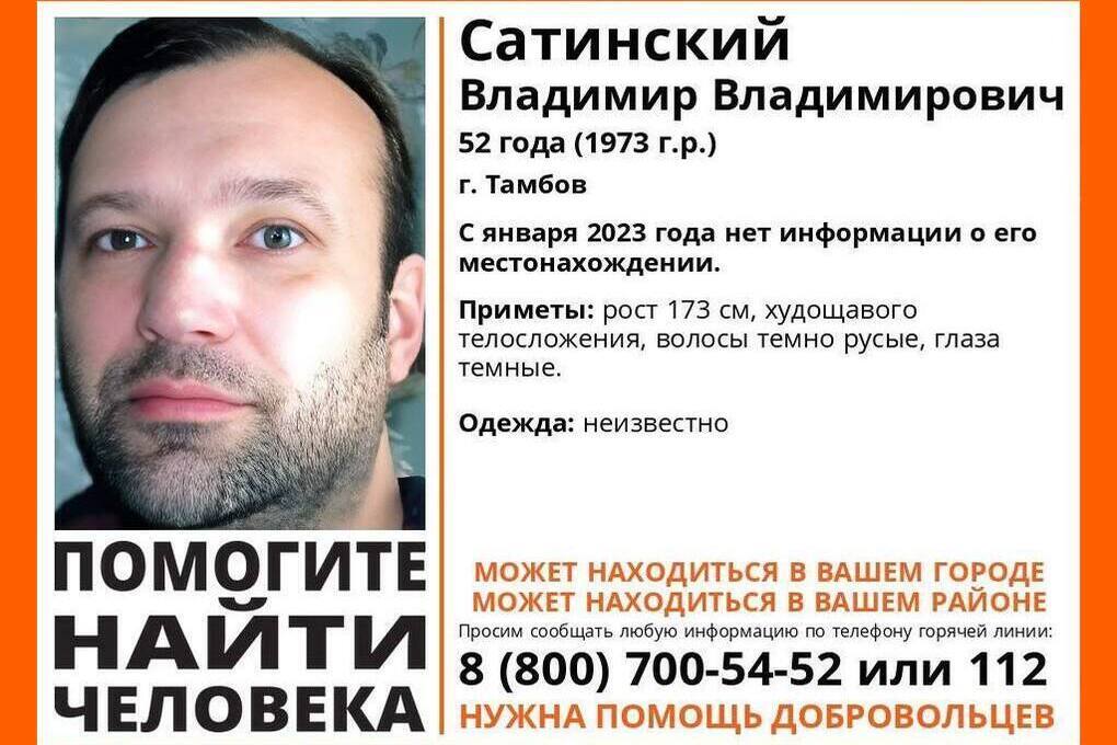 Розыск в Тамбове: уже два года о Владимире Сатинском ничего не известно