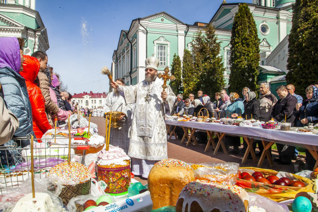 А накануне праздника, в Великую Субботу Страстной Седмицы, верующие после участия в Божественной литургии смогли освятить принесённые пасхальные кушанья: куличи, яйца и пасху.