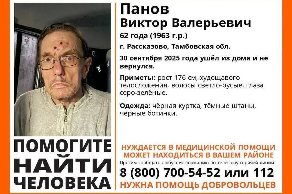 62-летнего мужчину, Виктора Панова, который покинул свой дом в Рассказово 30 сентября и до сих пор не вышел на связь, разыскивают поисковики.